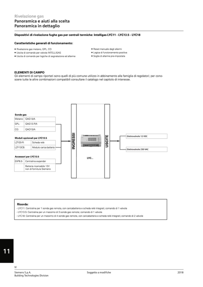 Dispositivi di rivelazione fughe gas per centrali termiche: Intelligas LYC11 - LYC13.5 - LYC18