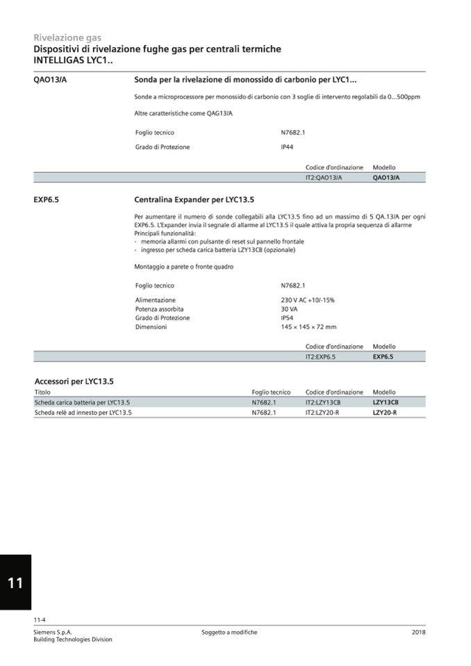 Per aumentare il numero di sonde collegabili alla LYC13.5 fino ad un massimo di 5 QA.13/A per ogni