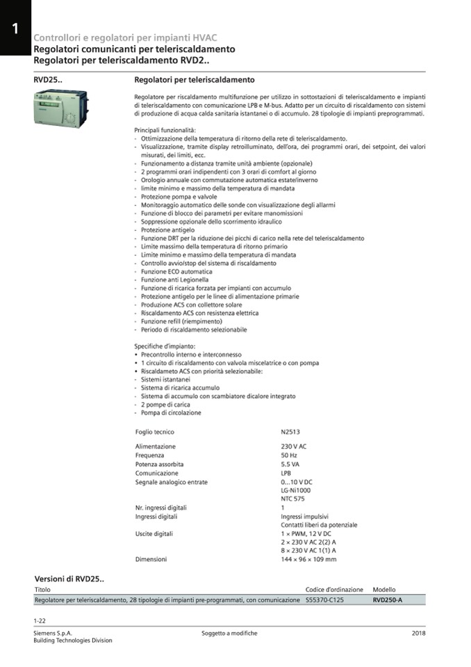 Regolatore per teleriscaldamento, 28 tipologie di impianti pre-programmati, con comunicazione