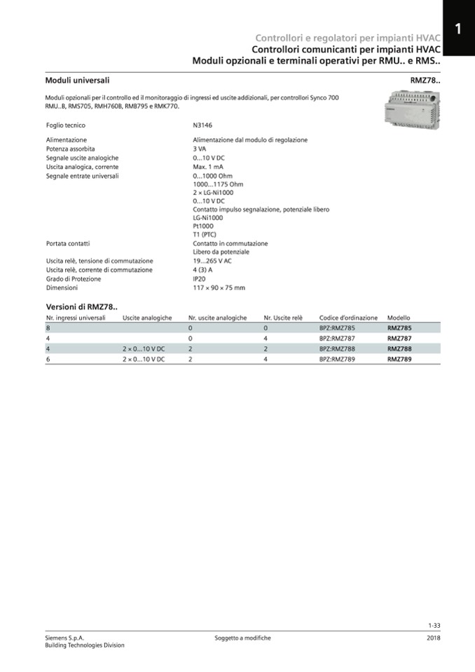 Moduli opzionali per il controllo ed il monitoraggio di ingressi ed uscite addizionali, per controllori Synco 700