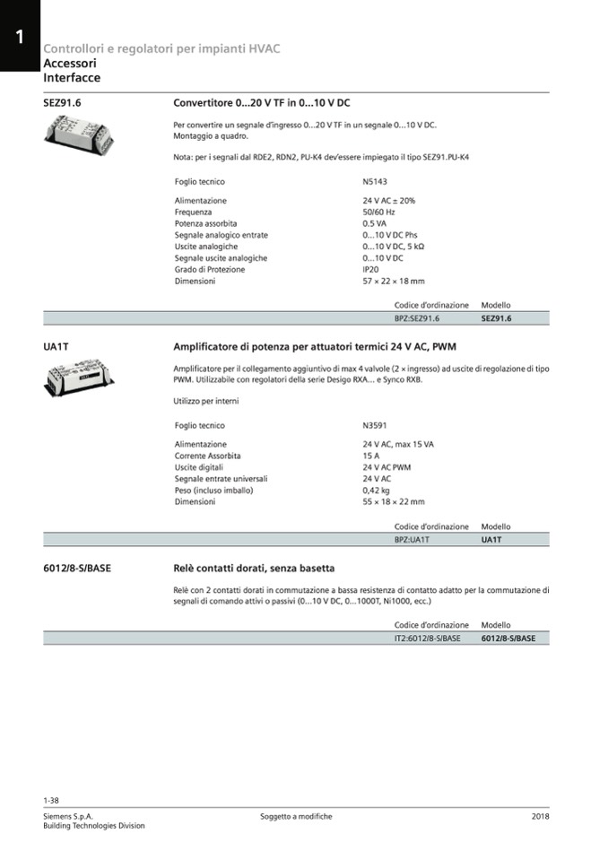PWM. Utilizzabile con regolatori della serie Desigo RXA... e Synco RXB.
