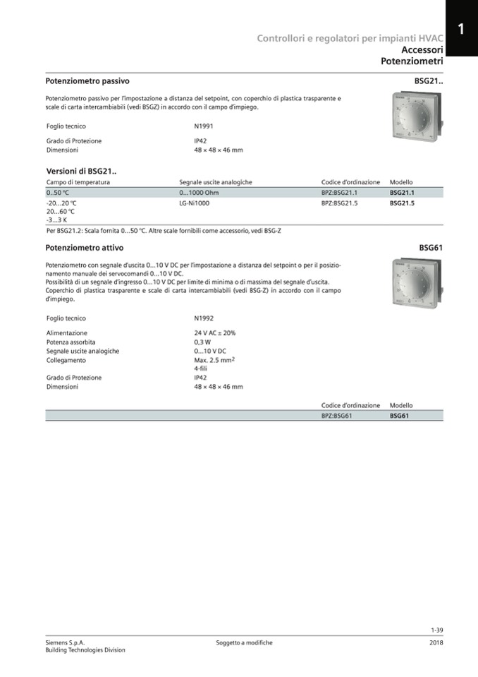 Potenziometro passivo per l’impostazione a distanza del setpoint, con coperchio di plastica trasparente e
