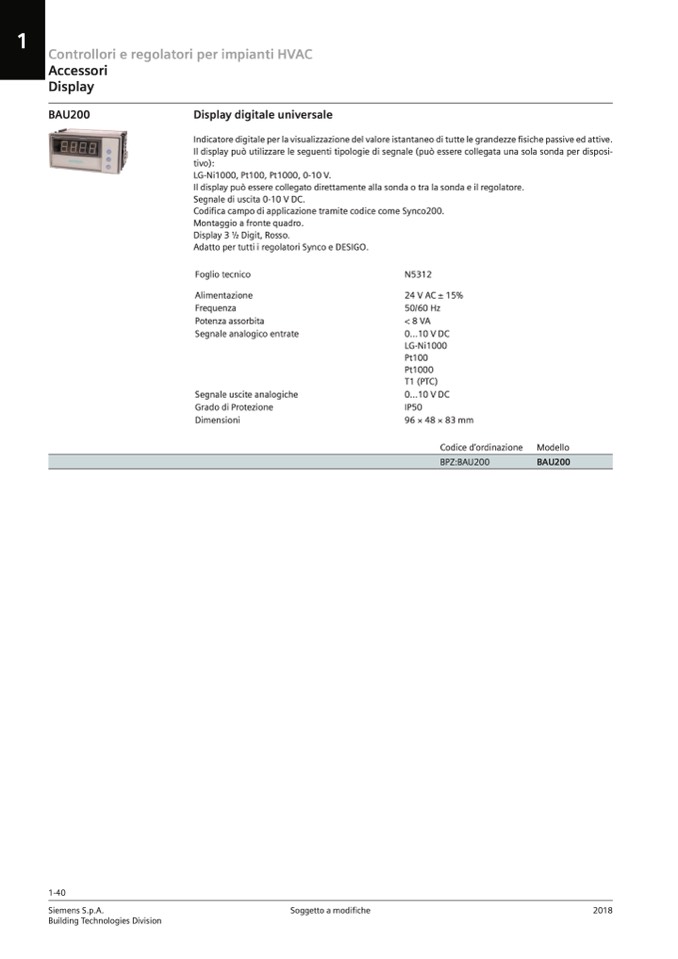 Indicatore digitale per la visualizzazione del valore istantaneo di tutte le grandezze fisiche passive ed attive.