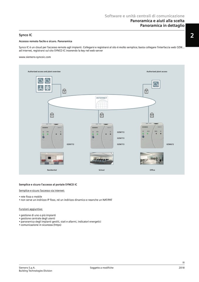Synco IC è un cloud per l’accesso remoto agli impianti. Collegarsi e registrarsi al sito è molto semplice; basta collegare l’interfaccia web OZW...