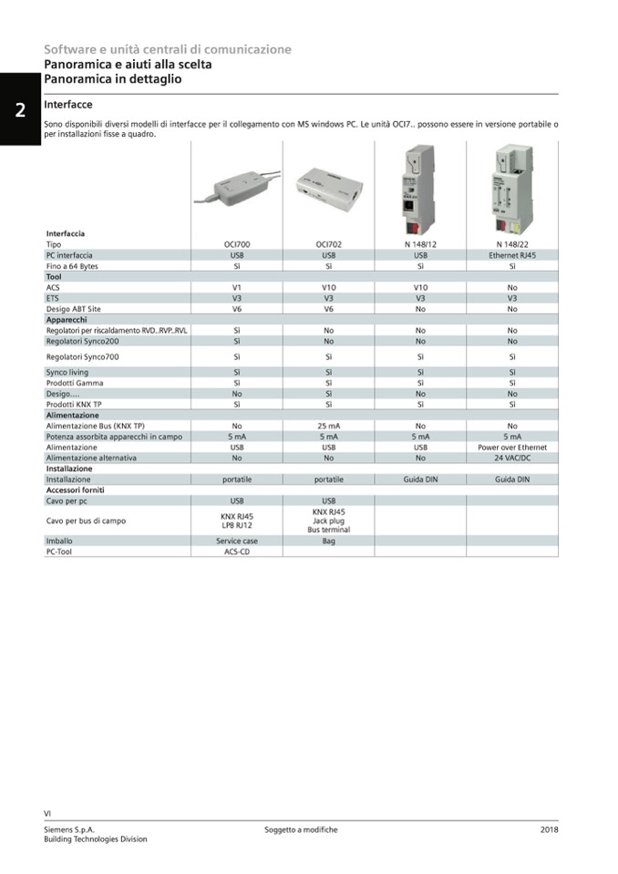 Sono disponibili diversi modelli di interfacce per il collegamento con MS windows PC. Le unità OCI7.. possono essere in versione portabile o