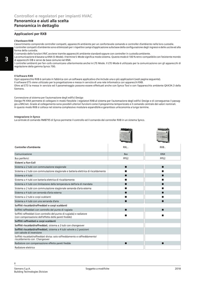Desigo PX KNX permette di collegare in modo flessibile i regolatori RXB al sistema per l‘automazione degli edifici Desigo e di conseguenza il passag-