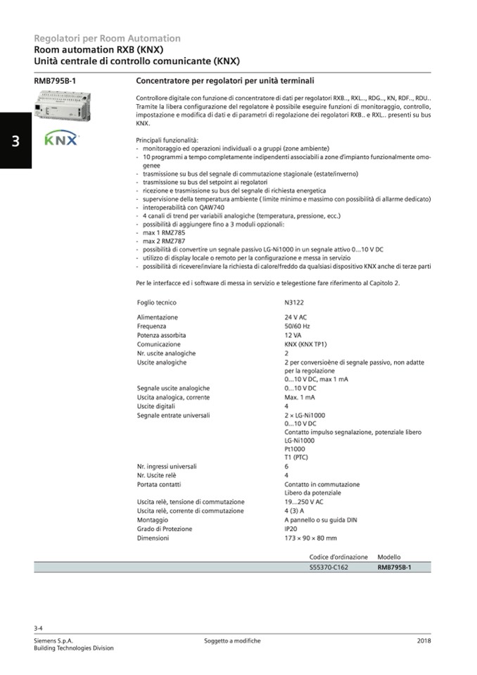 - possibilità di convertire un segnale passivo LG-Ni1000 in un segnale attivo 0...10 V DC