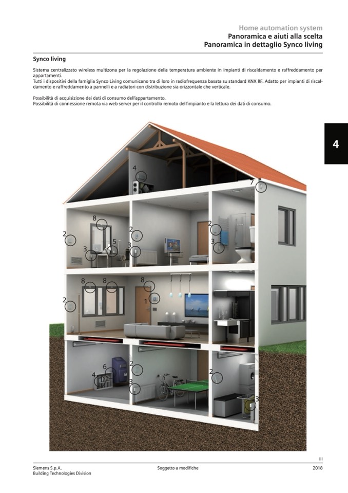 Tutti i dispositivi della famiglia Synco Living comunicano tra di loro in radiofrequenza basata su standard KNX RF. Adatto per impianti di riscal-