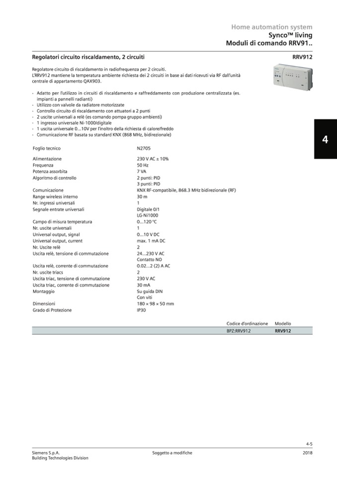 L’RRV912 mantiene la temperatura ambiente richiesta dei 2 circuiti in base ai dati ricevuti via RF dall’unità