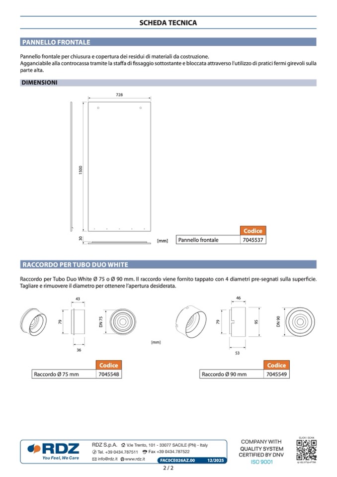 Raccordo per Tubo Duo White Ø 75 o Ø 90 mm. Il raccordo viene fornito tappato con 4 diametri pre-segnati sulla super