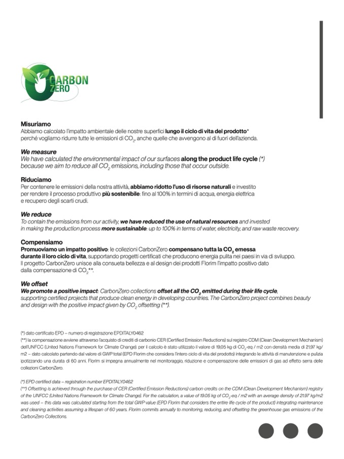 Il progetto CarbonZero unisce alla consueta bellezza e al design dei prodotti Florim l’impatto positivo dat
