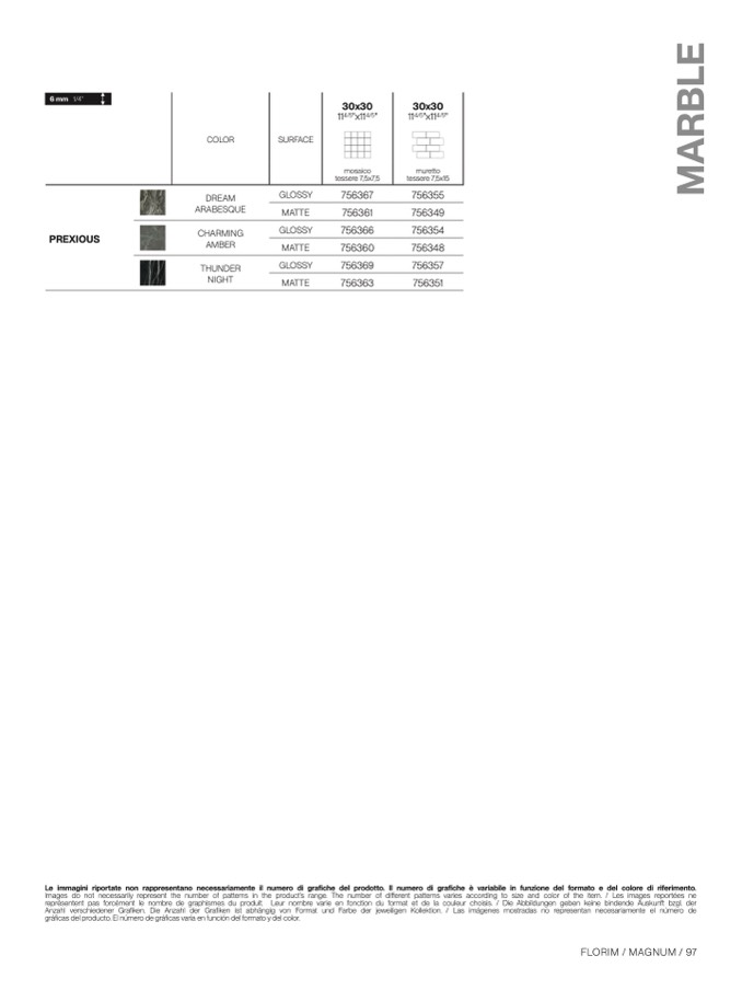 fiken. Die Anzahl der Grafiken ist abhängig von Format und Farbe der jeweiligen Kollektion. / Las imágenes mostradas no representan necesariamente el número d