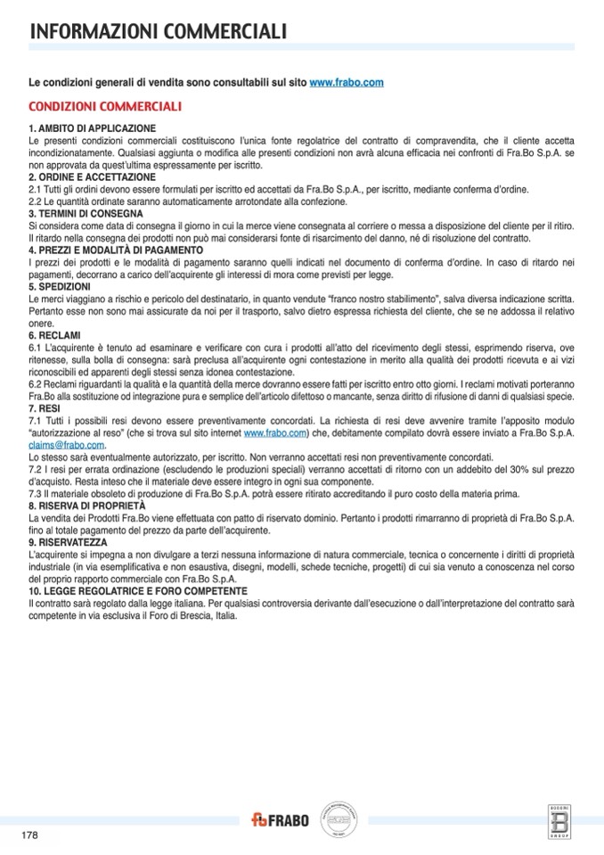 Le condizioni generali di vendita sono consultabili sul sito www.frabo.com