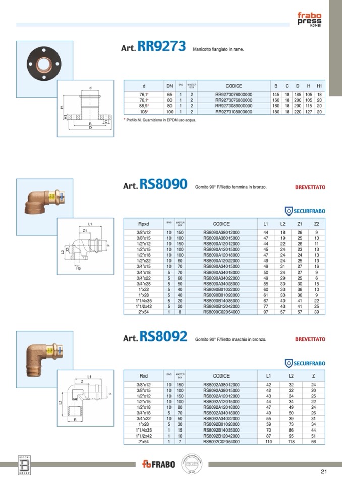 Gomito 90° F/filetto femmina in