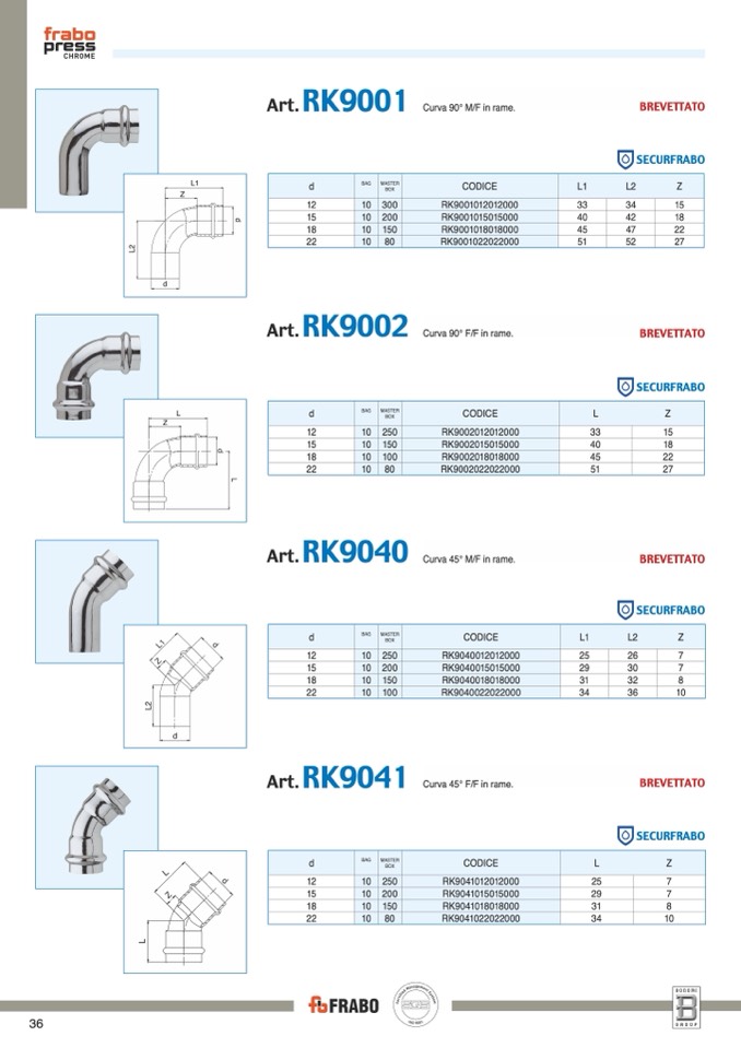 Curva 90° F/F in rame.