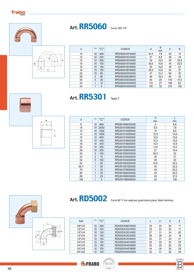 Curva 90° F con sede per guarnizione piana, filetto femmina.