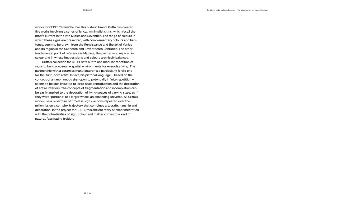 works for CEDIT Ceramiche. For this historic brand, Griffa has created