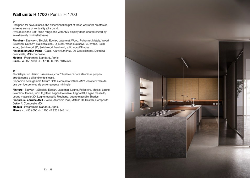 Disponibili nella gamma finiture Boffi e con anta vetrina AMV, caratterizzata da