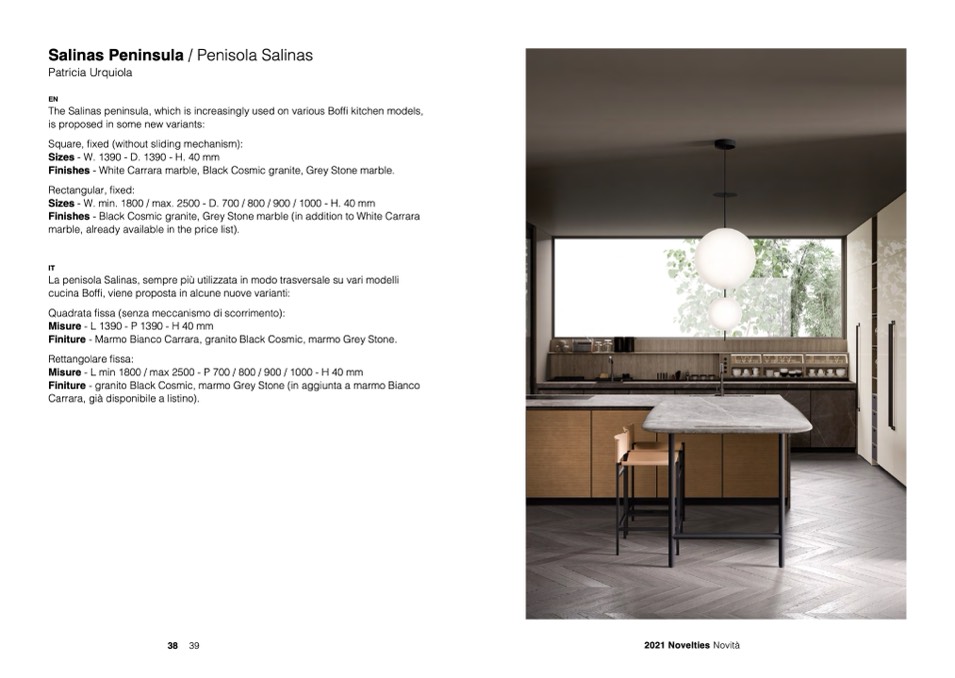 The Salinas peninsula, which is increasingly used on various Boffi kitchen models,