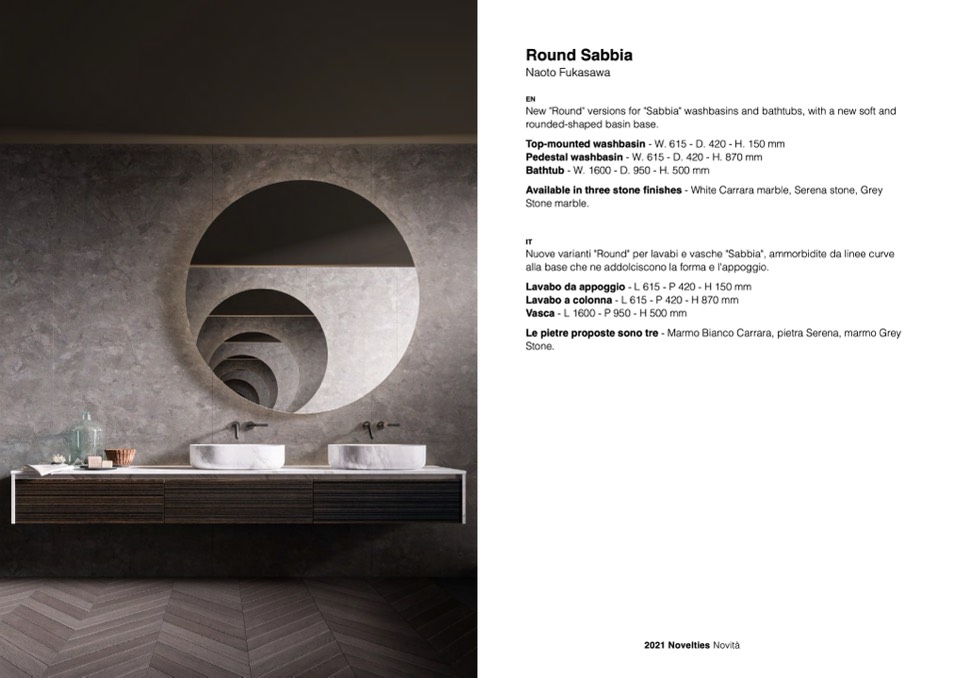 New "Round" versions for "Sabbia" washbasins and bathtubs, with a new soft and