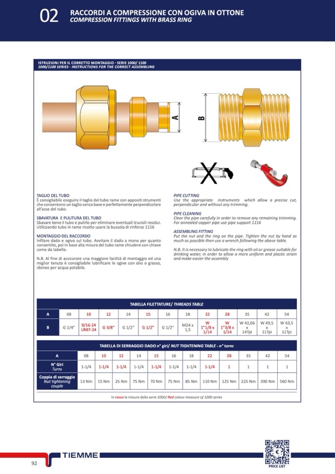 Utilizzando tubo in rame ricotto usare la bussola di rinforzo 1116