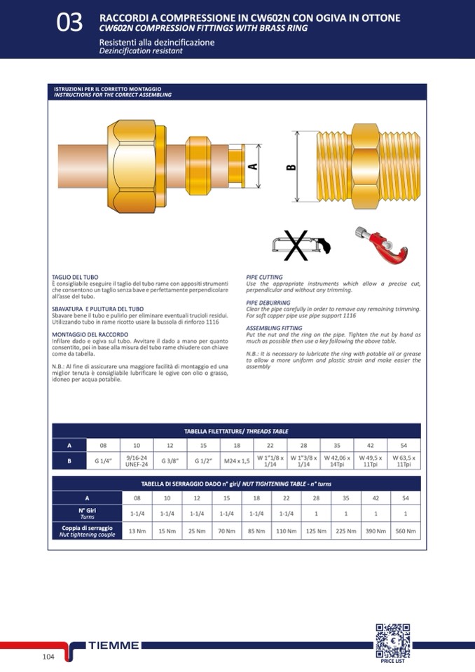 consentito, poi in base alla misura del tubo rame chiudere con chiave