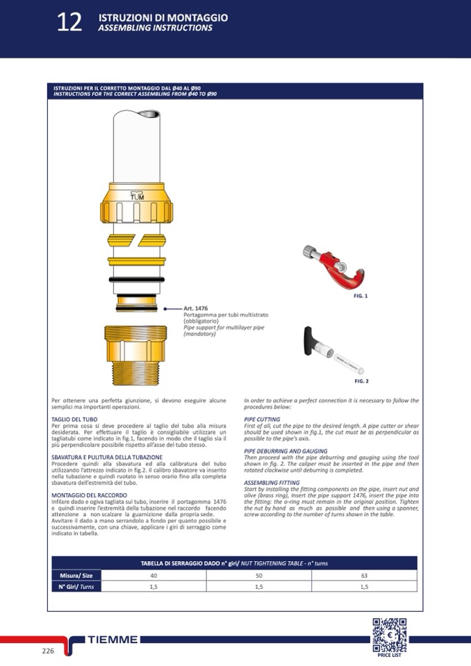 INSTRUCTIONS FOR THE CORRECT ASSEMBLING FROM Ø40 TO Ø90