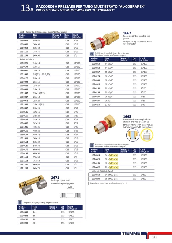 1651 - Raccordo diritto doppio/ Straight fitting double
