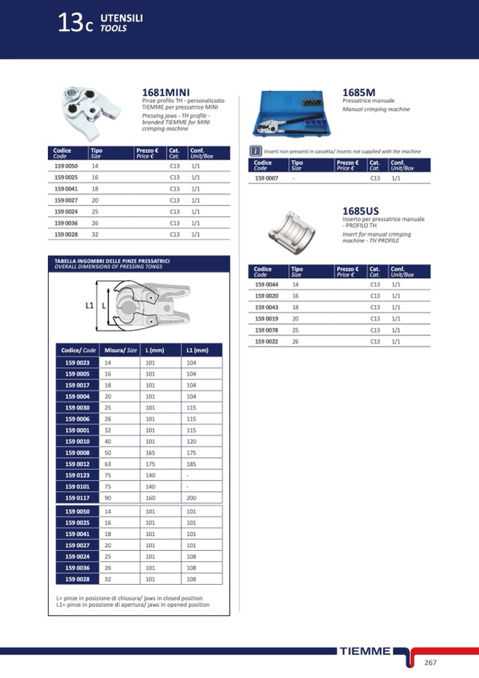 TABELLA INGOMBRI DELLE PINZE PRESSATRICI
