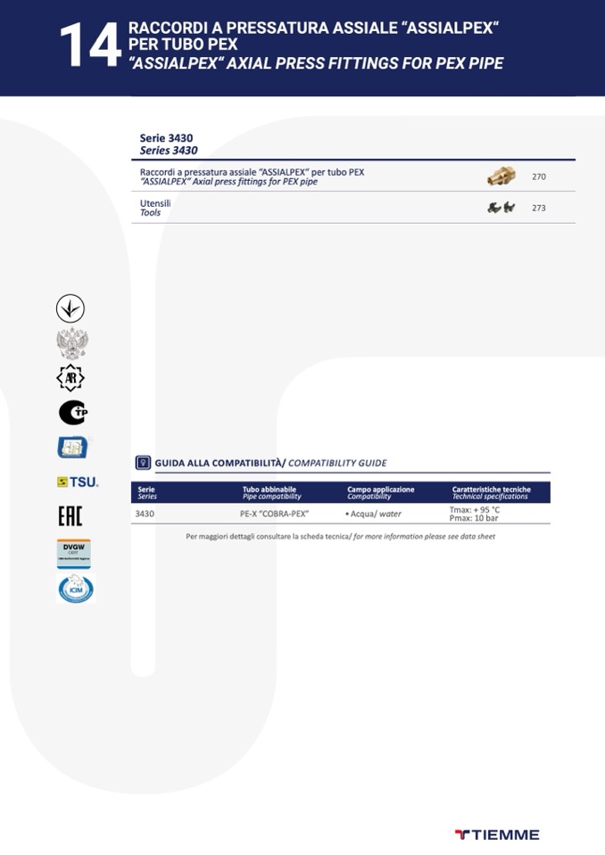 “ASSIALPEX“ Axial press fittings for PEX pipe