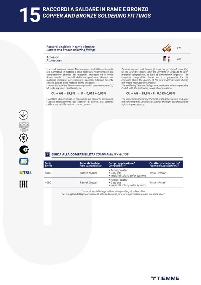 I raccordi in rame e bronzo Tiemme sono prodotti in conformit