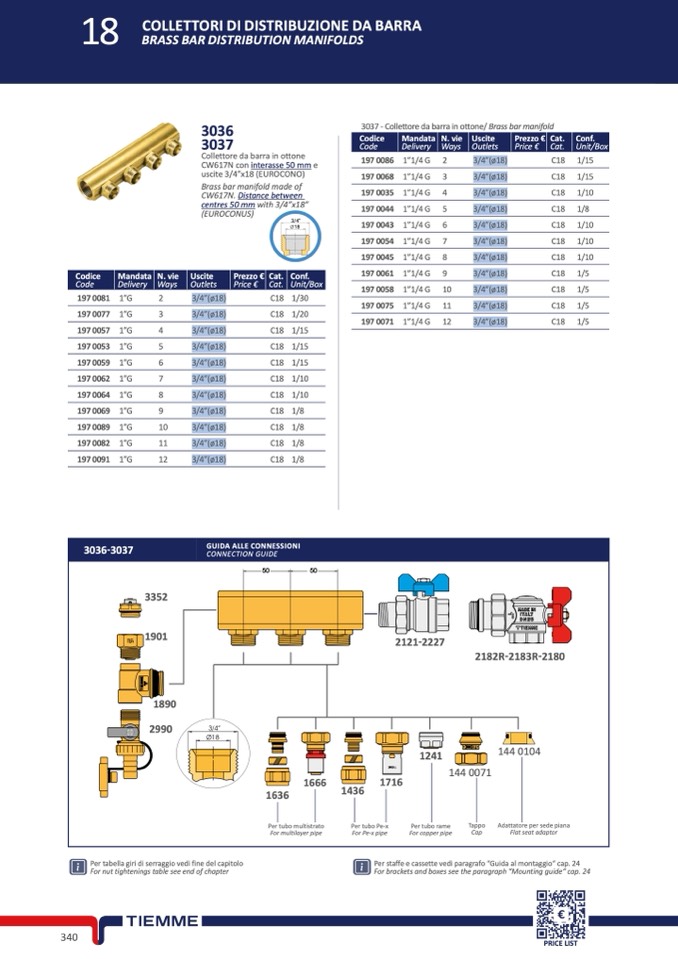 3037 - Collettore da barra in ottone/ Brass bar manifold
