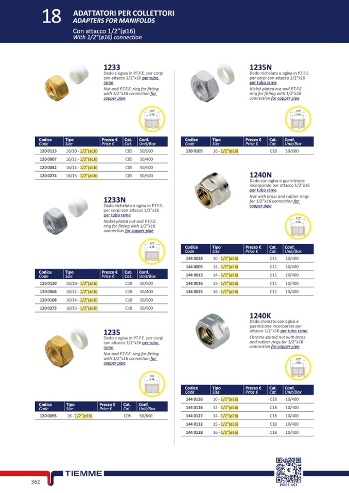 attacco 1/2”x16 per tubo rame