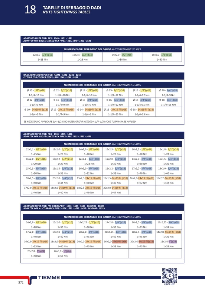 NUMERO DI GIRI SERRAGGIO DEL DADO/ NUT TIGHTENINGS TURNS