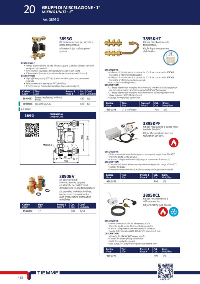 • Thermostatic head with external probe and regulation range of 20÷50°C