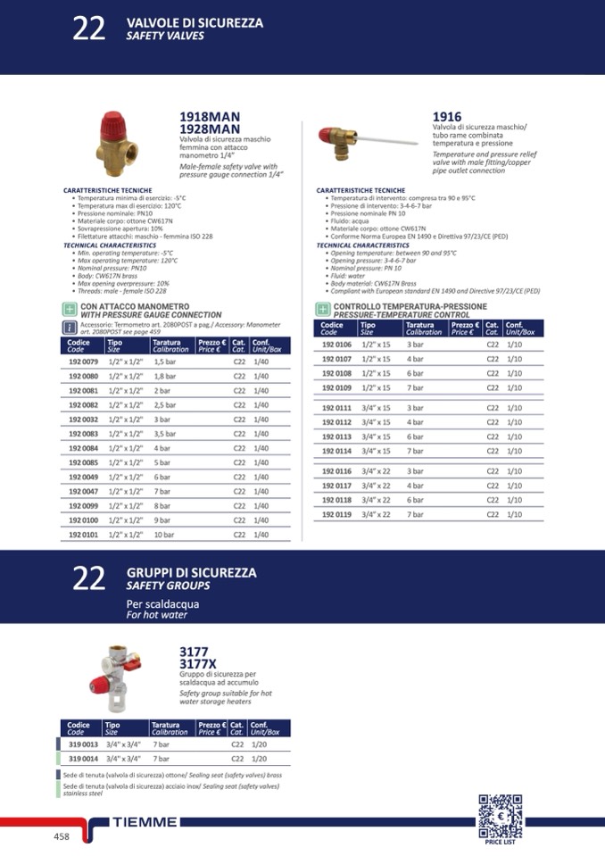 • Conforme Norma Europea EN 1490 e Direttiva 97/23/CE (PED)
