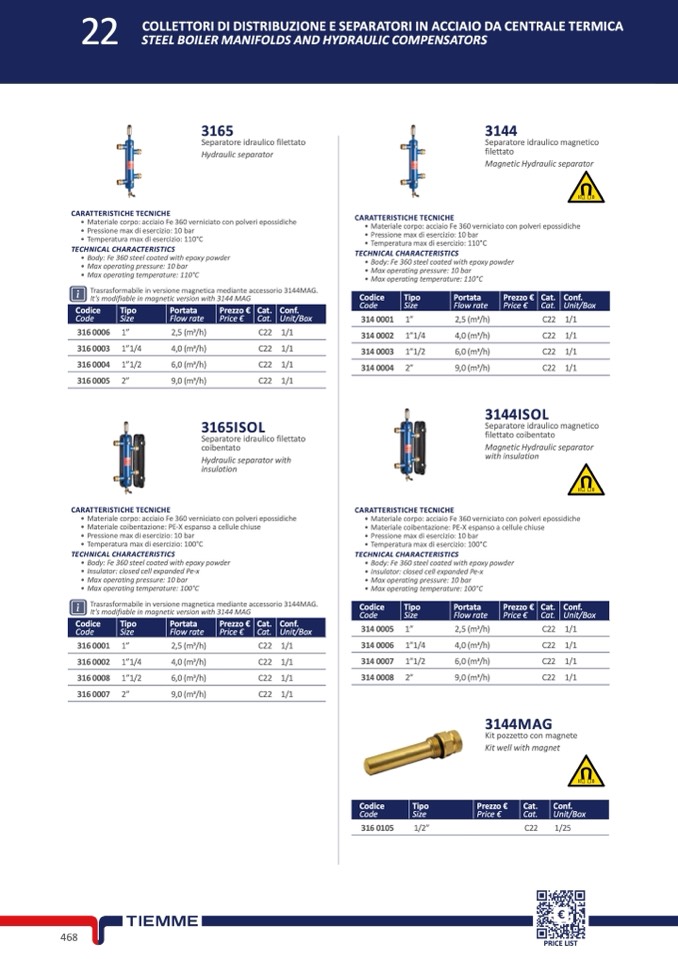 • Materiale corpo: acciaio Fe 360 verniciato con polveri epossidiche