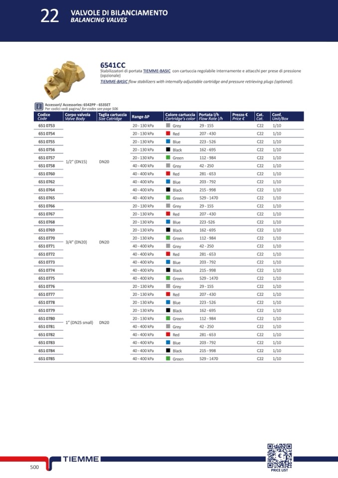 Stabilizzatori di portata TIEMME-BASIC con cartuccia regolabile internamente e attacchi per prese di pressione