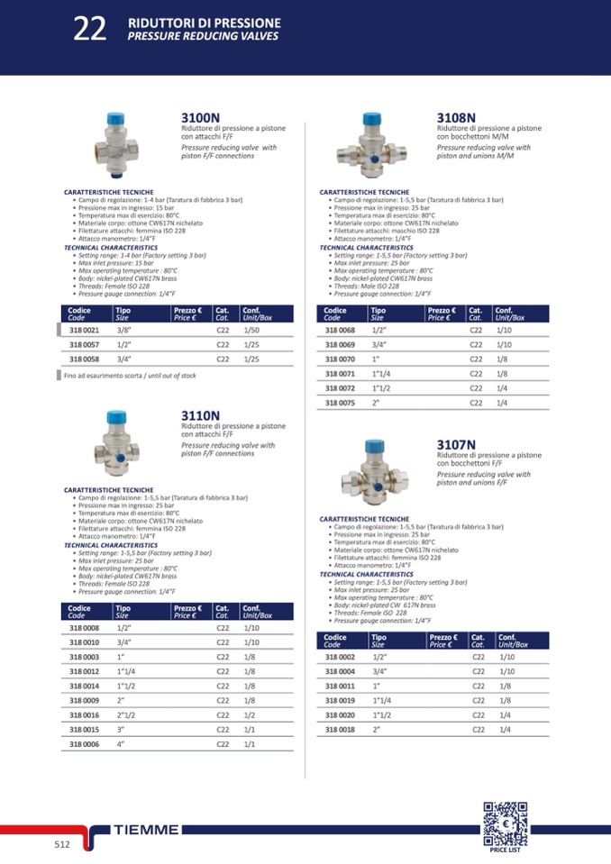 • Campo di regolazione: 1-4 bar (Taratura di fabbrica 3 bar)
