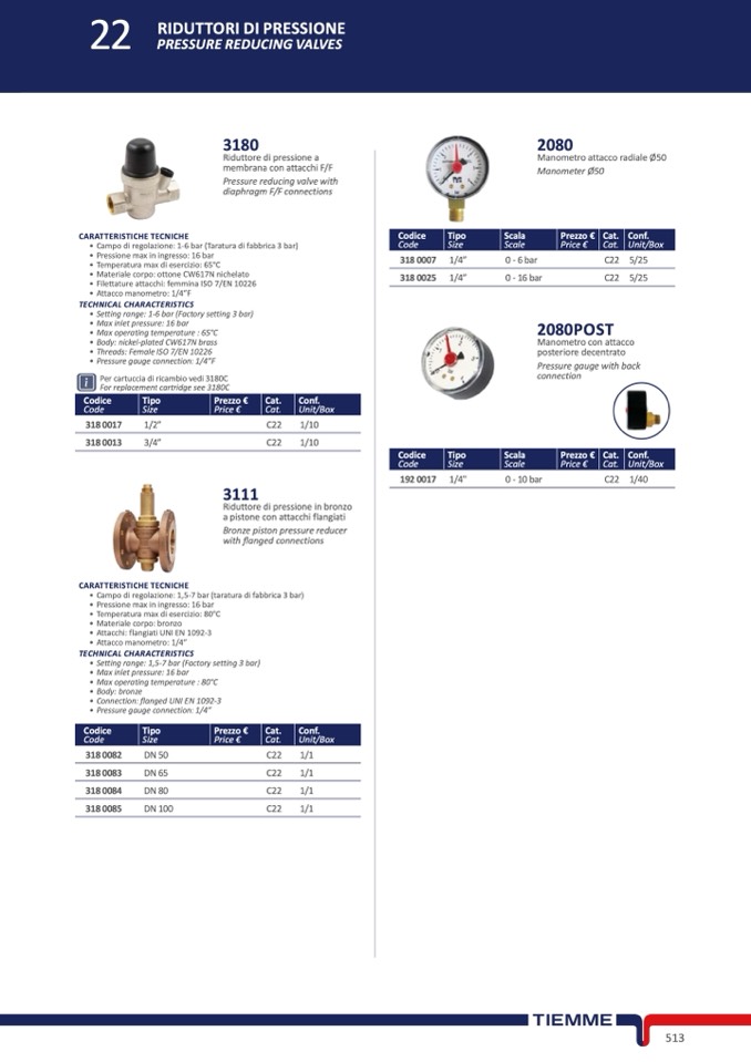 • Filettature attacchi: femmina ISO 7/EN 10226