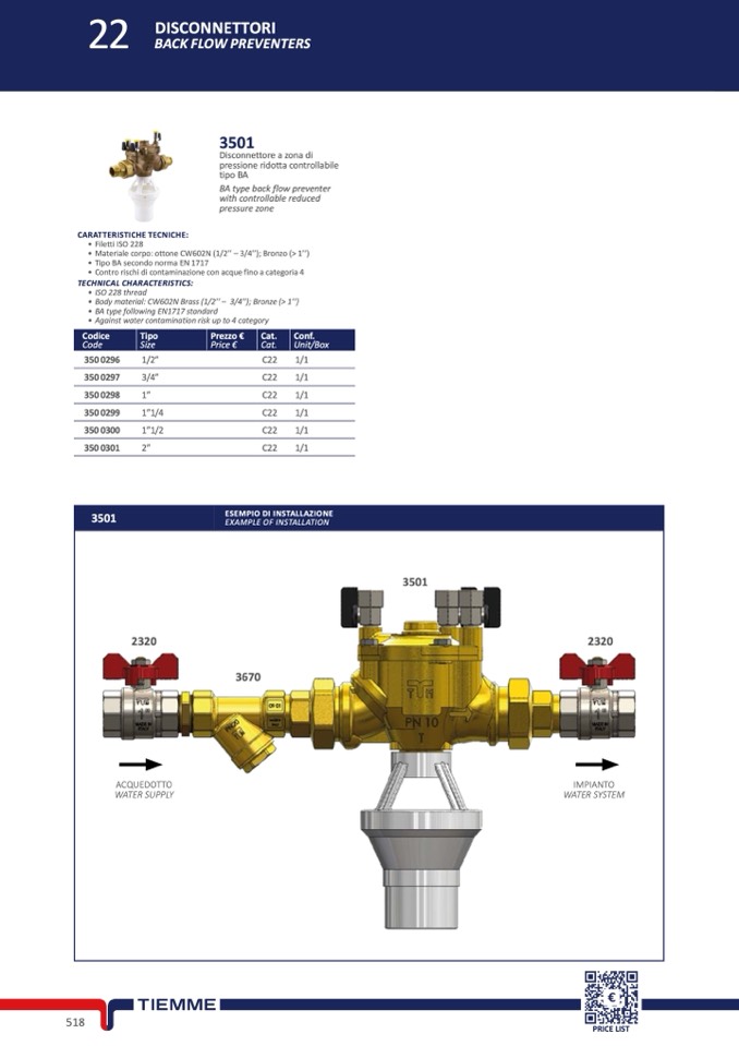 • Materiale corpo: ottone CW602N (1/2’’ – 3/4’’); Bronzo (> 1’’)