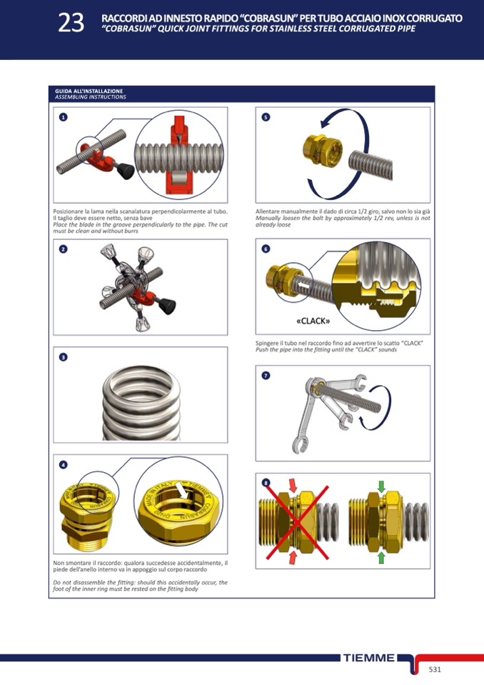 Spingere il tubo nel raccordo fino ad avvertire lo scatto “CLACK”