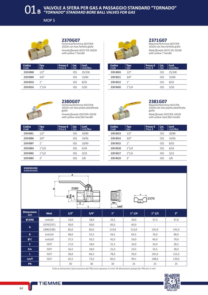 Tutte le dimensioni (ad eccezione del PN) sono espresse in mm/ All dimensions (except for PN) are in mm