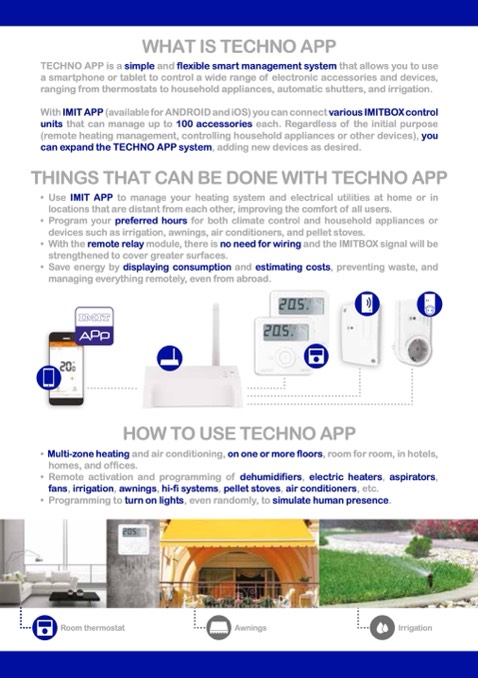 • Use IMIT APP to manage your heating system and electrical utilities at home or in