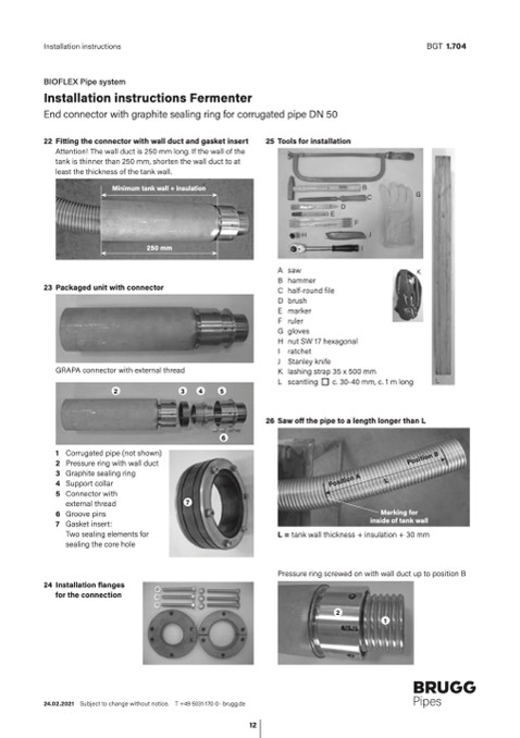 End connector with graphite sealing ring for corrugated pipe DN 50