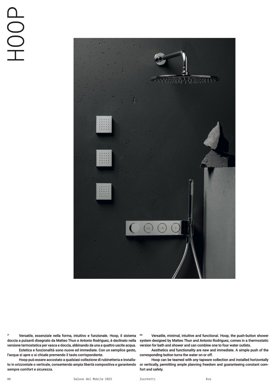 Versatile, minimal, intuitive and functional. Hoop, the push-button shower