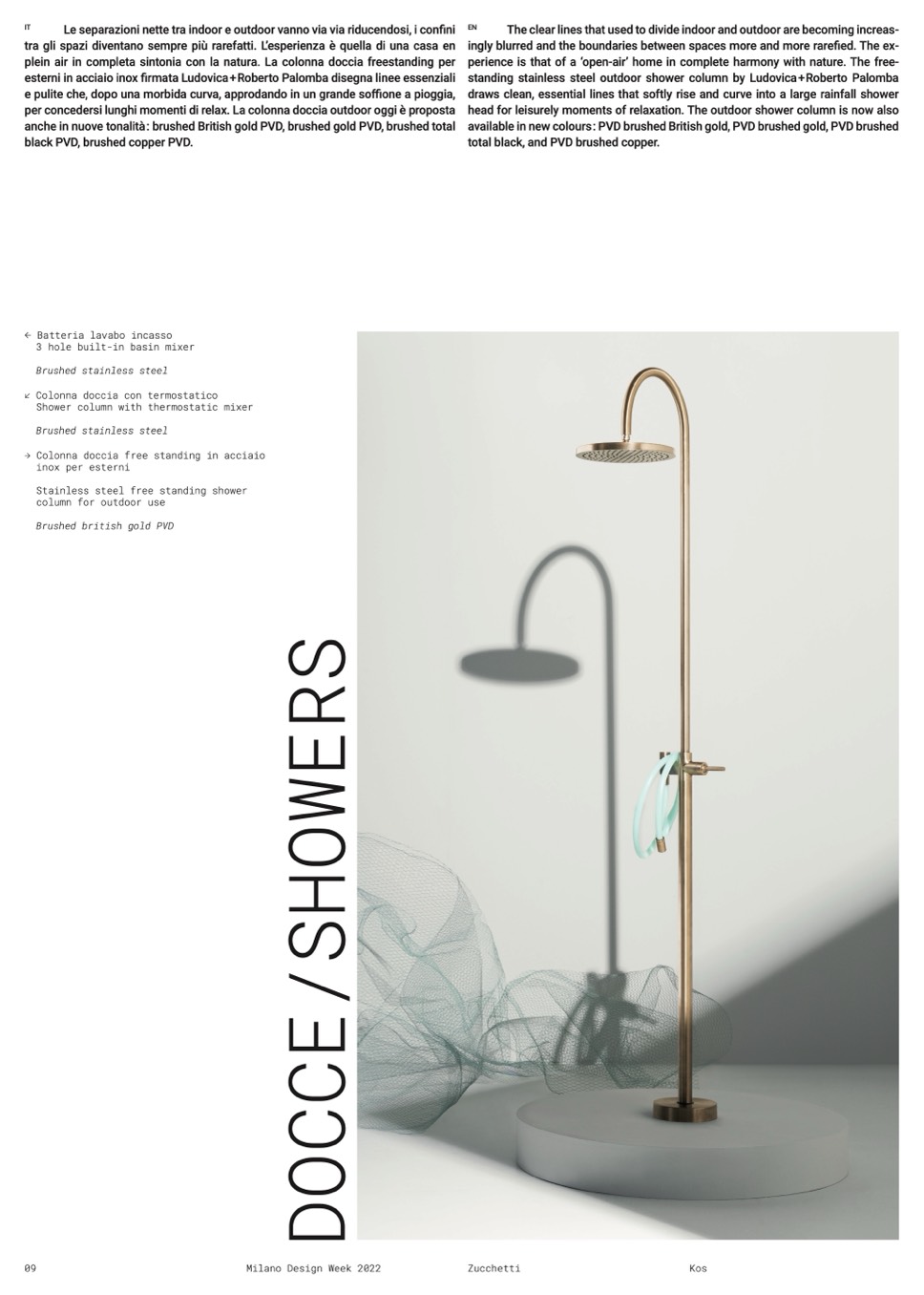 standing stainless steel outdoor shower column by Ludovica + Roberto Palomba