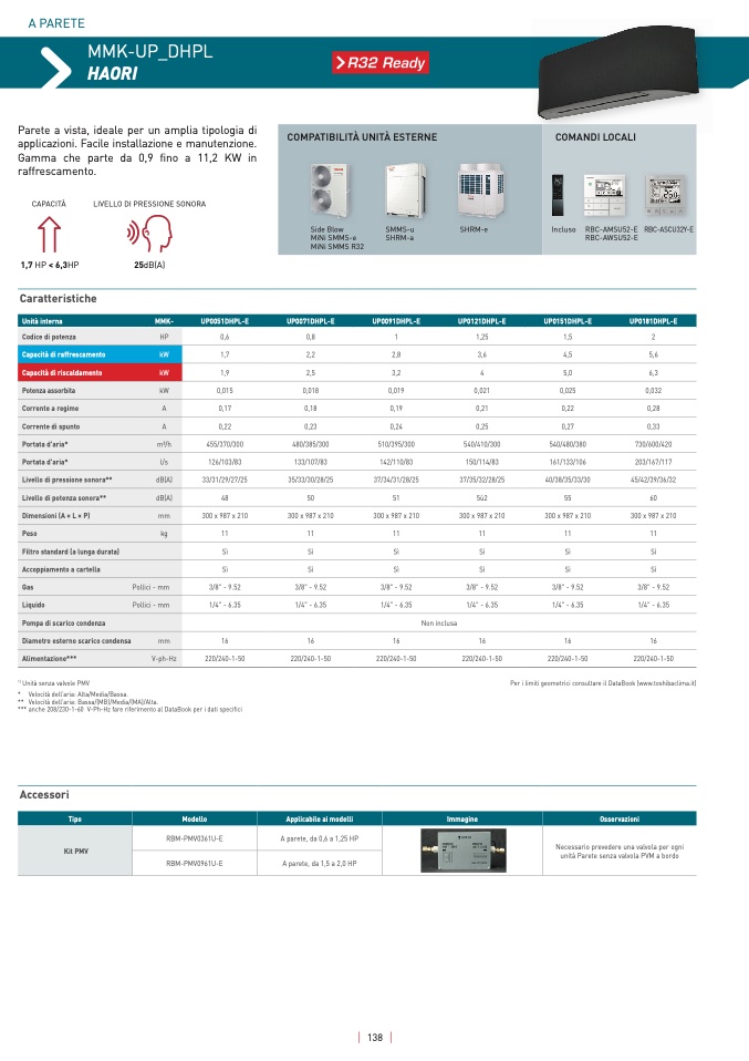 Per i limiti geometrici consultare il DataBook (www.toshibaclima.it