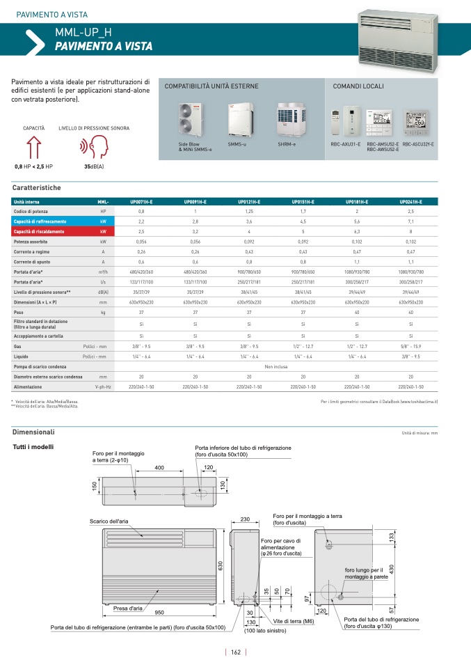 Per i limiti geometrici consultare il DataBook (www.toshibaclima.it