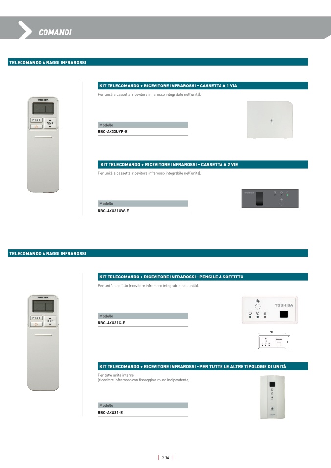 Per unità a soffitto (ricevitore infrarosso integrabile nell’unità)